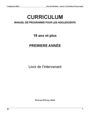 Curruculum des Adolescents Compassion Haiti 19 et Plus Annee 1