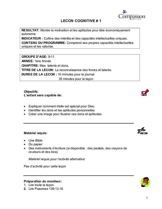 L01 Reconnaitre les forces et talents CO 9-11 Yr1